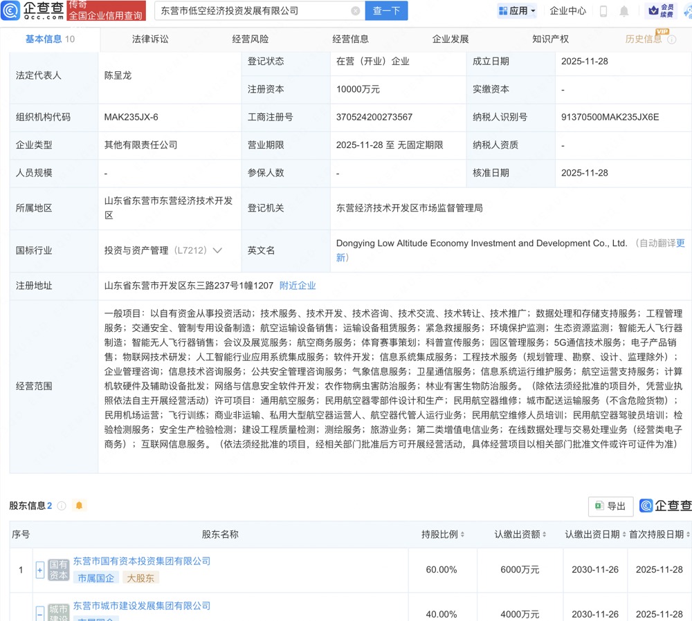 配资杠杆平台 东营国资成立低空经济投资发展公司,含AI业务 配资杠杆平台 作者:涨停大师兄 平台:证券配资系统_证券投资APP_证券交易APP 更新:2025-12-18 23:40:32 阅读:184